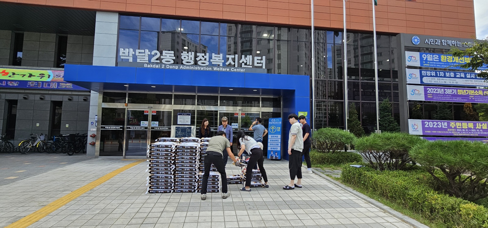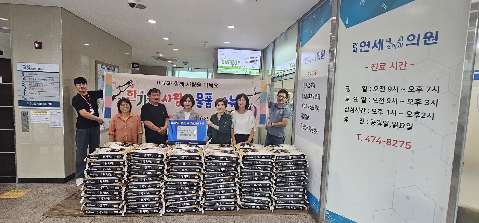 추석을 맞이하여 9월20일21일 2일간 석수2동,3동 박달2동 행정복지센터에 어려운 이웃과 함께 온정을 나누고자 사랑의 물품 전달식을 진행하였습니다.