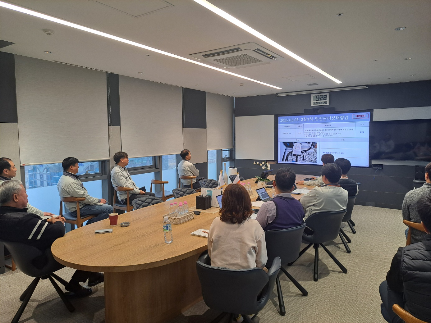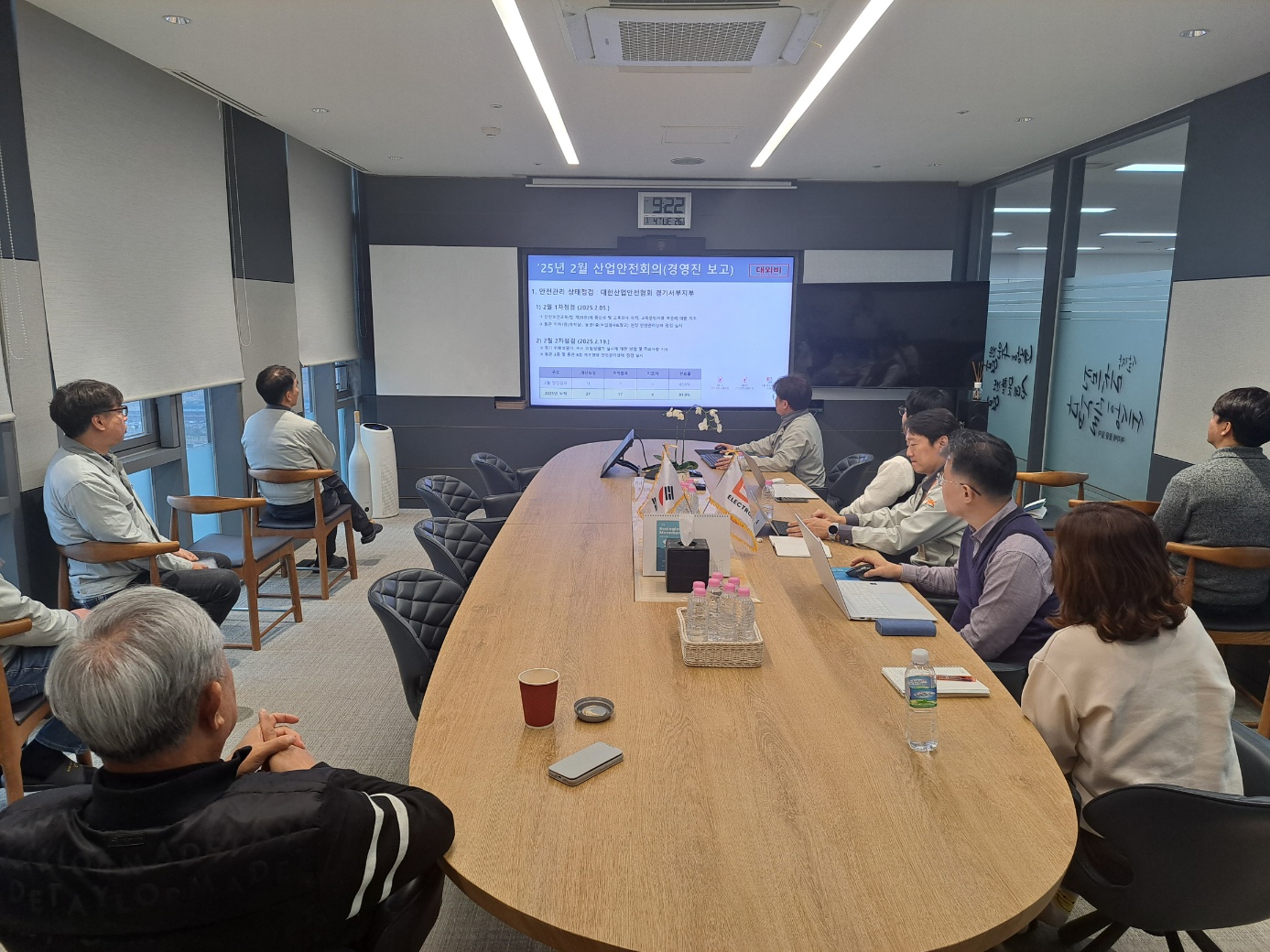2025년 2월 안전관리상태점검 경영진 보고회의 – 안전보건교육(법 제29조)의 중요성 및 교육강사 자격, 교육증빙서류 보존에 대한 지도 – 정기 위험성평가, 수시 위험성평가 실시에 대한 방법과 주의사항 지도 – 동관 지하1층, 1층, 3층, 8층 안전관리상태 점검