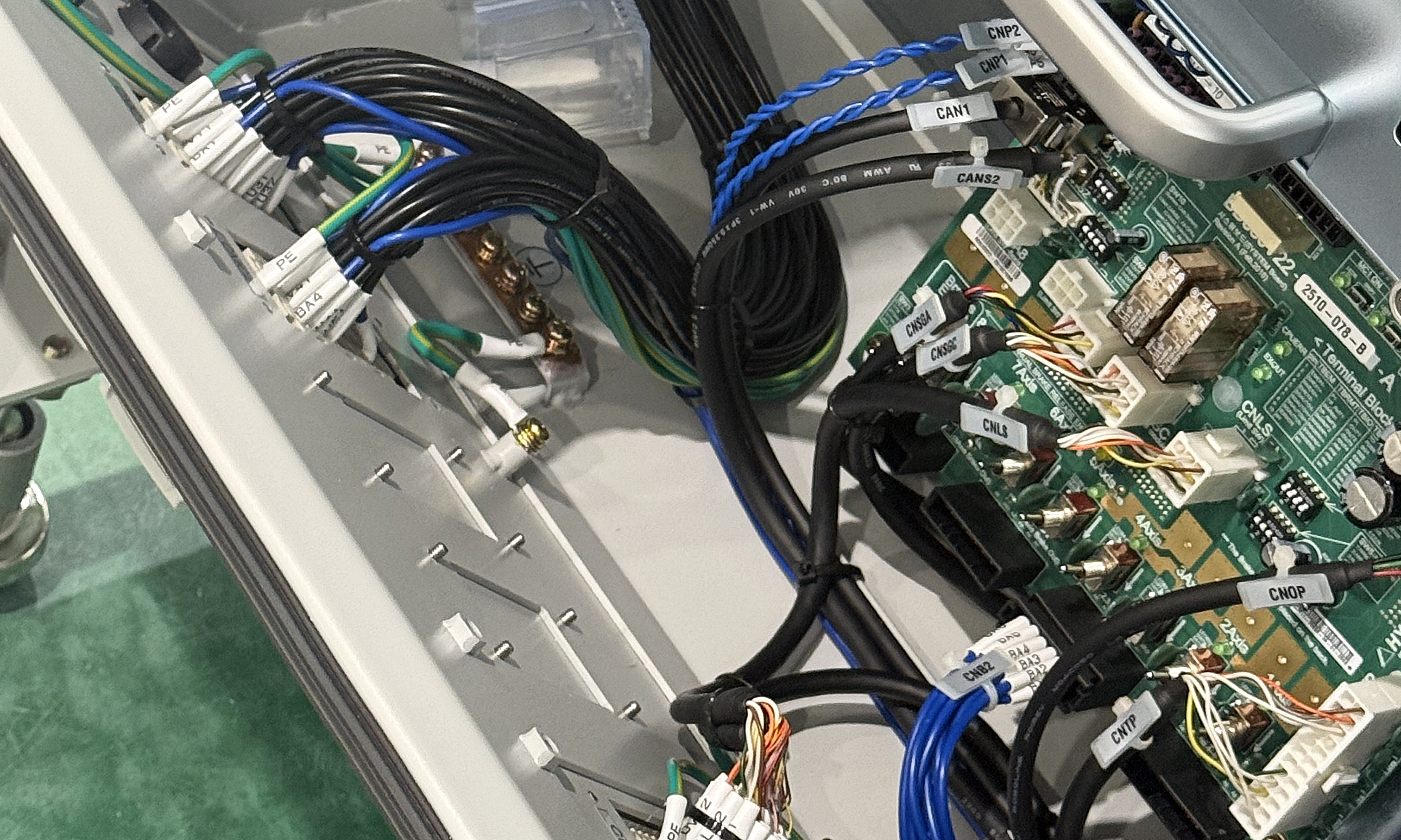 ➡️ 수십 암페어(A)에서 수백 암페어 이상의 전류를 안정적으로 공급할 수 있도록 설계된 하네스로 도체가 굵고 절연 성능이 매우 우수한 특징을 갖고 있습니다. 또한, 전류가 커지면 선로와 커넥터 열이 발생하여 화재로도 이어질 수 있기 때문에 발열 관리가 매우 중요합니다. 고전류 하네스는 높은 전력을 안정적으로 전송하기 위해 열과 진동 환경을 모두 견딜 수 있어야 합니다.