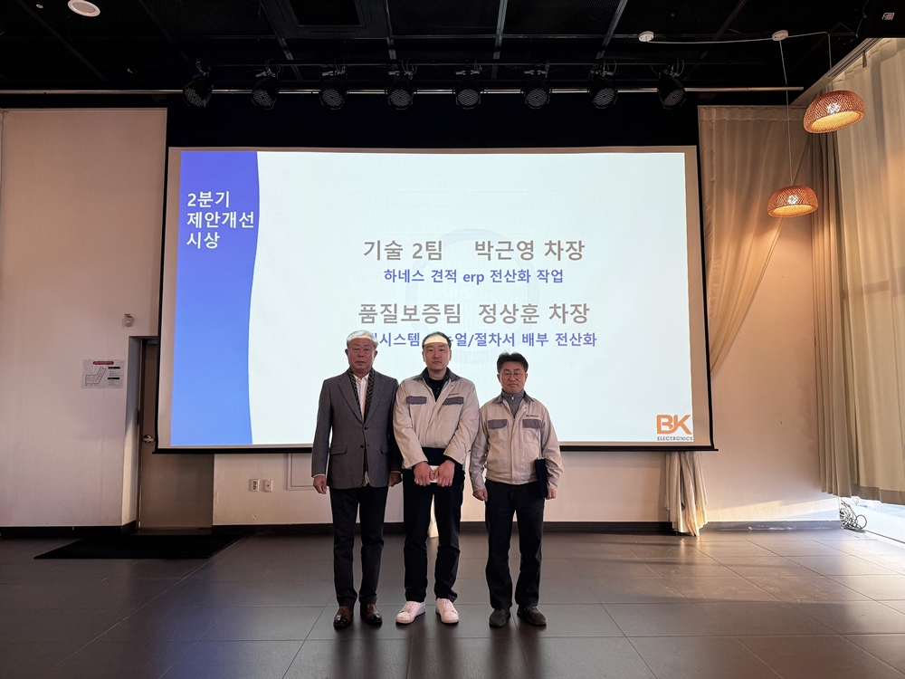 유병기 사장님께서는 40여 년 역사를 되돌아보며 급변하는 글로벌 정세 속에서 비케이전자가 지켜온 것은 “항상 새로운 것을 발 빠르게 도입해 보는 실행력”이며, 단순한 제조를 넘어서 고객 가치를 실현하는데 올해도 어김없이 AI Tool을 전사에 적극 활용하기를 말씀하셨습니다. 묵묵히 자신의 자리에서 최선을 다하는 직원분과 비케이전자와 오랫동안 함께 해주신 파트너사 모두에게 결실이 가득한 한 해 되길 기원합니다.