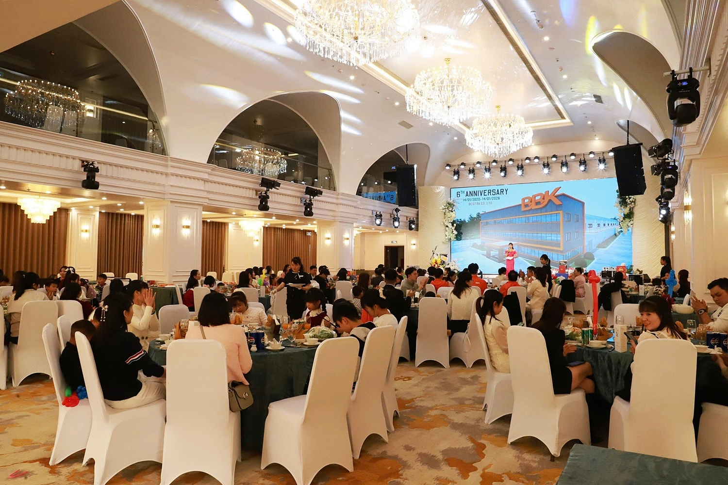 비케이전자 베트남법인 BBK가 어느덧 창립 6주년을 맞이하였습니다. 그 동안의 땀방울을 서로 격려하고 더 큰 내일을 약속하기 위해 특별한 행사를 진행했는데요. 다양한 경품과 이벤트, 맛있는 음식, 감동적인 포상까지 함께 한 창립기념일 행사 현장이었습니다. 마지막 단체 사진에서 모두 모여 가장 환하게 웃으며 마무리했습니다.