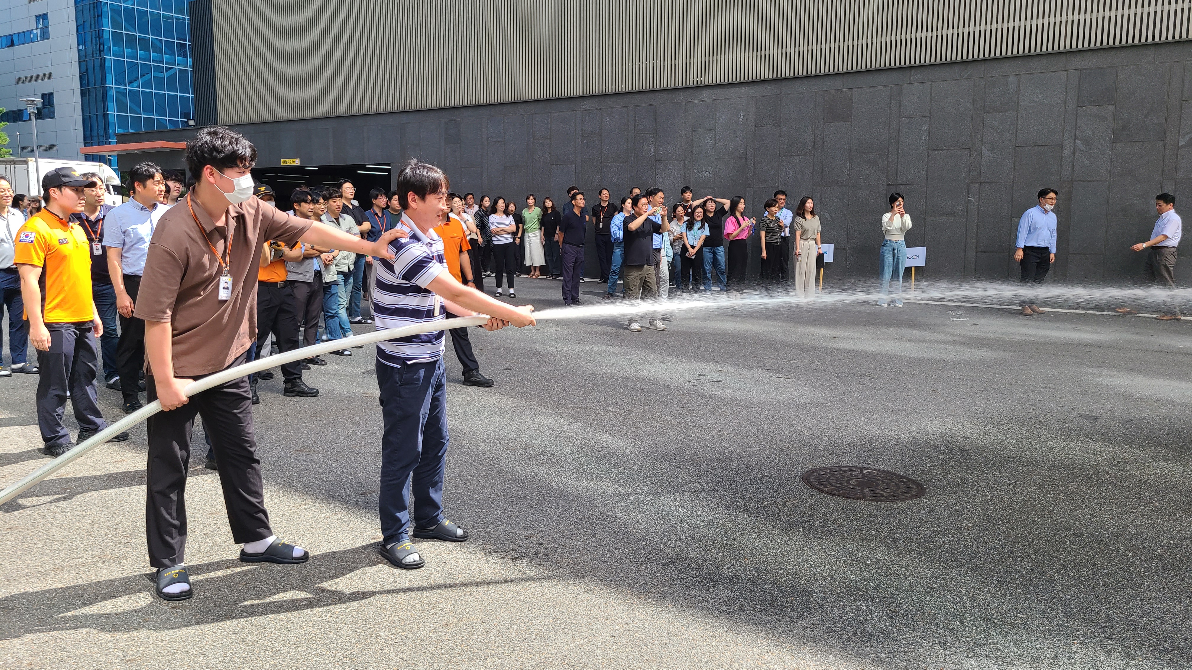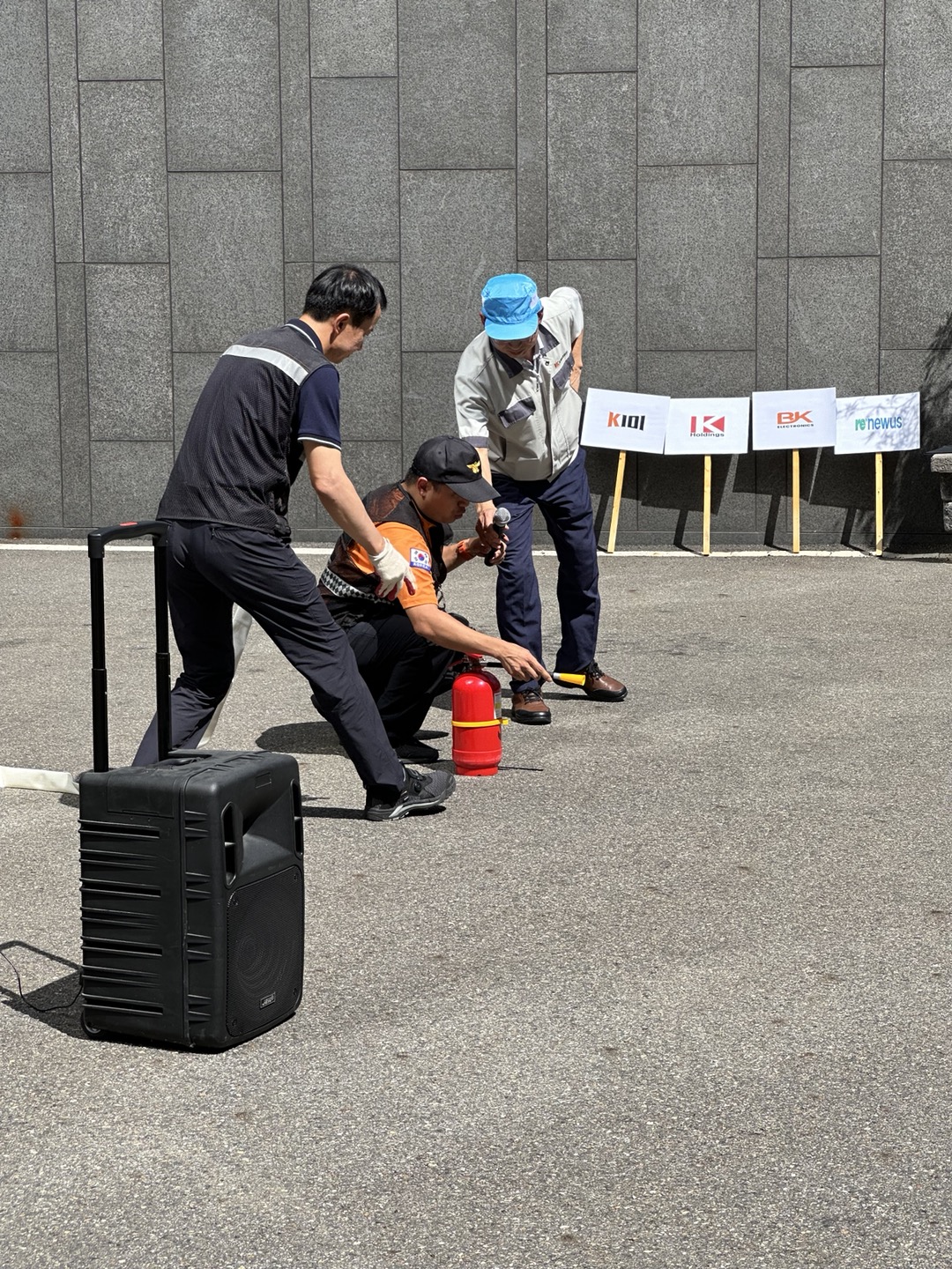 BK Electronics conducted fire safety training to prepare for disasters such as fires and earthquakes. Emergency evacuation training Fire extinguisher usage and radiation training