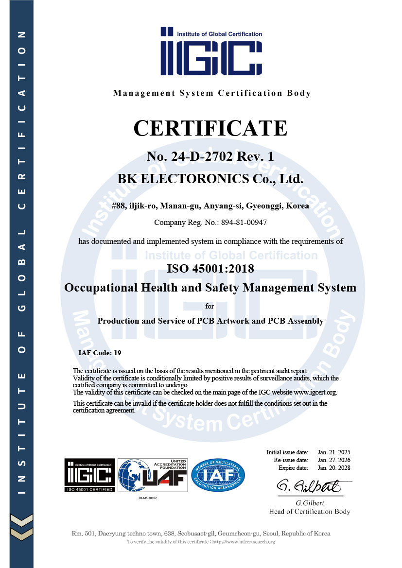 Possessing ISO 9001 / ISO 14001 / IATF 16949 / ISO 13485 / ISO 45001 / KS Q 9100 (AS 9100)
