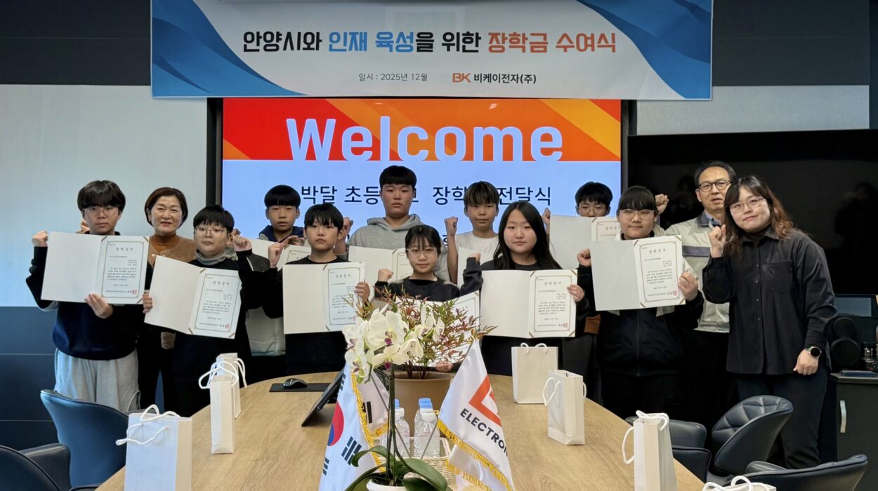 2025 지역초등학교 졸업생 장학금 전달식 비케이전자는 지역 초등학교 3곳에 장학금 전달식을 진행하였습니다. 이번 전달식 행사는 지역초등학교 학생들의 졸업을 축하하며, 희망찬 미래의 꿈을 그리고 있는